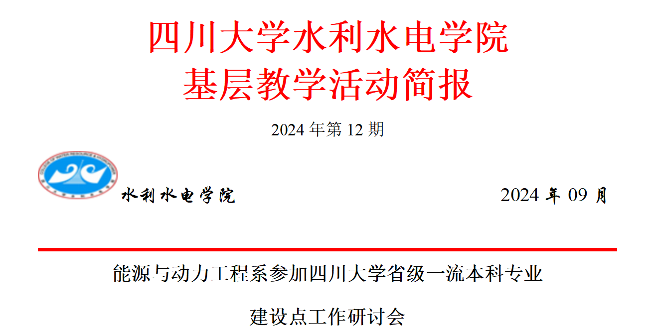 2024年9月26日,能源与动力工程系孙立成教授、杜敏副教授参加了四川大学省级一流本科专业建设点工作研讨会。此次研讨会由四川大学教务处主办,旨在深入贯彻教育部关于实施一流本科专业建设“双万计划”的指导意见,推动四新建设,做强一流本科、建设一流专业、培养一流人才,实现高等教育内涵式发展。