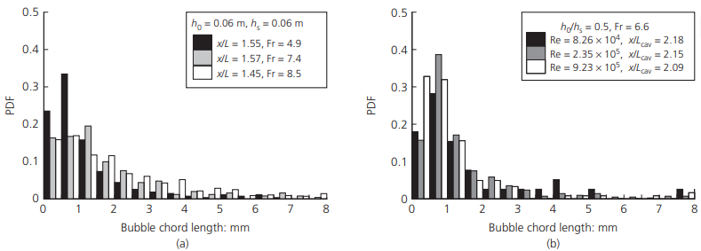 不同弗劳德数Fr、雷诺数Re下底板表面气泡尺寸分布