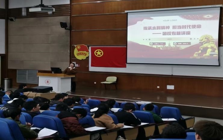 全体与会人员齐唱团歌后,马丹作"传承水利精神,担当时代使命"主题报告。她强调团校作为青年思想引领阵地的重要作用,系统阐释了水利精神的时代内涵,分析了当前水利事业面临的机遇与挑战,并就行业就业方向及发展前景进行专业解读。通过详实案例,勉励学子夯实专业基础,厚植奉献情怀,在科技创新与民生保障中践行使命担当。