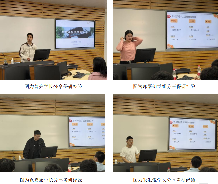 能动2班团支书郑婧同学从“总体国家安全观”切入,结合专业特点,阐述了能源安全对国家战略的重要意义,并引导同学们思考如何在“双碳”目标下规划个人发展,为国家能源事业贡献力量。接下来为了帮助青年团员更好地结合国家战略需求进行个人发展规划,7位选择不同发展方向的优秀学长学姐受邀为大家分享经验;他们以亲身经历为蓝本,通过保研、考研、就业等多维发展路径的生动案例,为同学们描绘出清晰的发展图景。