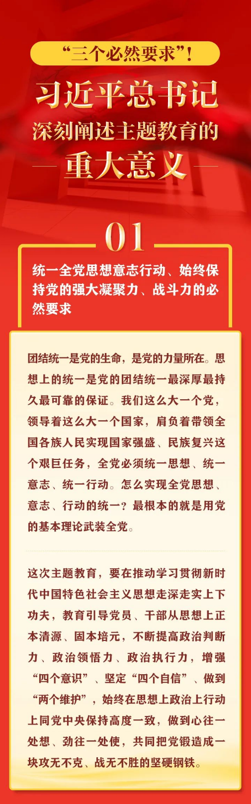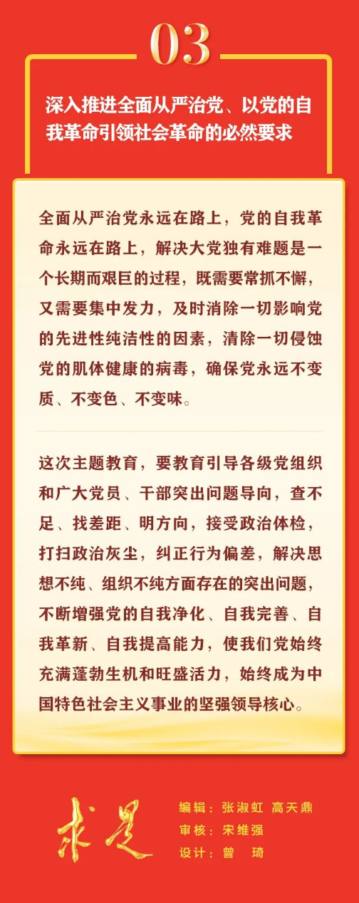 5月1日出版的第9期《求是》杂志刊发习近平总书记重要文章《在学习贯彻习近平新时代中国特色社会主义思想主题教育工作会议上的讲话》。在这篇重要文章中,习近平总书记用“三个必然要求”深刻阐述开展这次主题教育的重大意义。