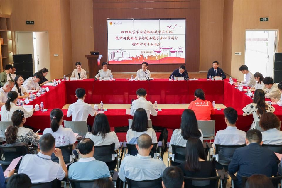 5月5日,学校在江安校区召开学习贯彻习近平总书记给中国农业大学科技小院学生回信精神暨五四青年座谈会。校党委书记甘霖出席会议并讲话。校党委副书记郭勇,相关单位负责人,青年师生代表等参加座谈会。郭勇主持座谈会。