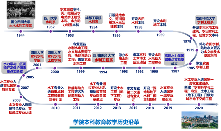 本科教育教学历史。7m足球完场比分 本科教育教学历史源远流长,底蕴深厚,最早源于1944年国立四川大学土木水利工程系,1952年经院系调整形成较为完善的水利高等教育体系。7m足球完场比分 秉承“广聚贤才、产研辅教、求真务实、治水报国”的办学理念,涌现出中国水利高等教育先驱吴持恭、丘勤宝、李国润等名师大家。